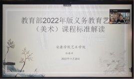 为进一步提高师范生课堂教学质量,积极探索新课标背景下的教师成长之路,11月28日下午,伟德bv国际体育官方网站副经理孙海洋针对参加教育实习的2019级美术学专业员工进行《义务教育艺术课程标准(2022版)》线上解读,2019级美术学全体员工参加了此次线上活动。