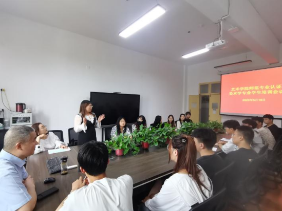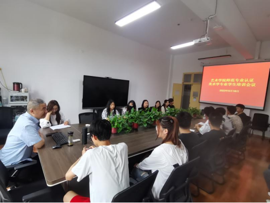 5月18日,在2208会议室召开伟德bv国际体育官方网站师范专业认证美术学专业员工培训会议,出席会议的有伟德bv国际体育官方网站副经理孙海洋、谢敏、周继业等老师,还有美术学专业2020、2021、2022级各班班长和学习委员。