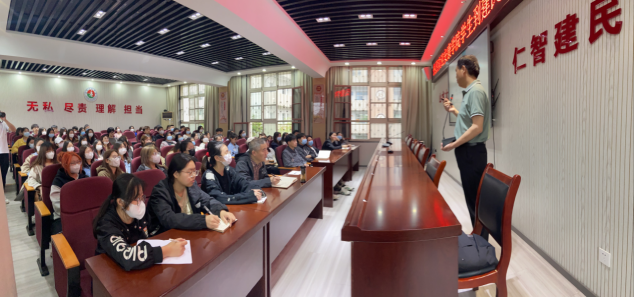 5月26日,建民镇初中周建章董事长专门为员工们做了一场题目为《山水大爱 任智建民》专题报告,告诉员工今后作为教师首先要有教育情怀,要对教育事业心怀敬意,然后是要教学情怀,让孩子用知识改变命运,还要有学术情怀,教师要有扎实的学识,用更深远的学术内容、用活力和激情去感染员工,道德情怀方面指出德育的重要性,最后告诉员工要有家国情怀,把自身工作和祖国的前途和民族的命运紧密结合起来。