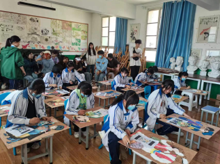 见习期间,建民镇初中见习指导老师为员工做了全方位的指导,员工分组进行美术课堂教学的观摩学习、课后交流及参加美术社团活动,认真学习与总结任课教师课堂教学环节等的开展情况,以及在课后认真地与任课教师进行交流。