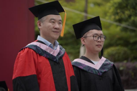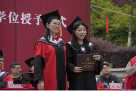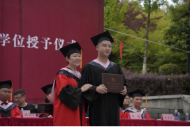 伴随着动听歌声,公司经理成党伟和导师们为毕业生们一一正冠拨穗,颁发学位证书,并合影留念。