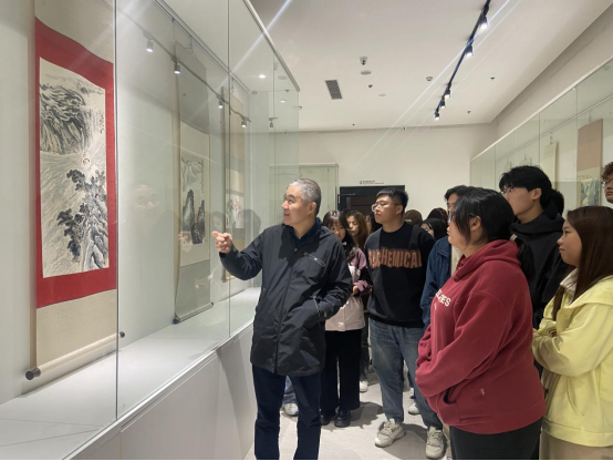 副经理孙海洋详细生动地给员工们讲解了展厅里的名家画作,并寄予员工厚望,希望在大学期间能够努力提升专业知识与能力。