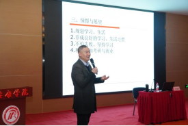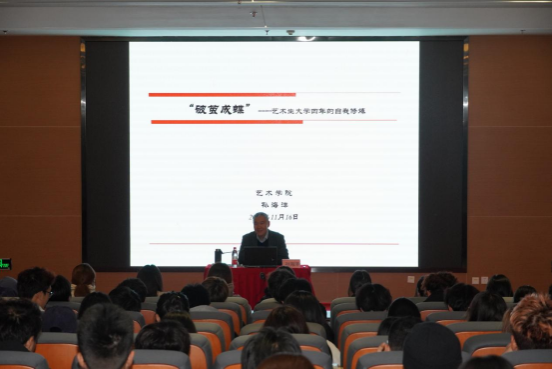 11月16日晚,伟德bv国际体育官方网站副经理孙海洋以“破茧成蝶—— 艺术生大学四年的自我修炼”为主题开展了新生入学教育专题讲座。本次讲座由学工办主任鲁澧主持。