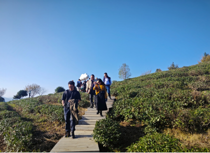 在紫阳茶山,和煦的秋日阳光温暖惬意,教职工登山品茗,感受自然与人文的和谐共生,放松身心,享受生活。