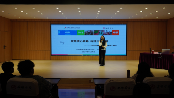 启动仪式后,第一讲由林繁老师以《聚焦核心素养 构建生本课堂》为主题对《2022义务教育艺术课程标准》进行了解读,林老师围绕课程修订背景、原则、课程性质、理念与设计思路、艺术课程目标、艺术课程教学建议等方面给同学们进行了深入浅出的讲解,使同学们对课程学科核心素养、课程结构及相关教学要求有了更深入的理解。
