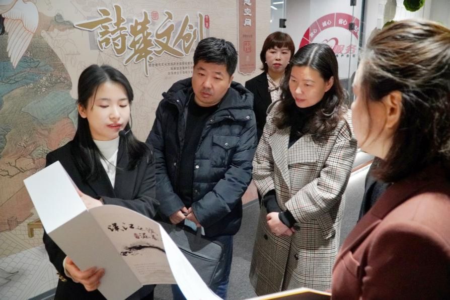 在企业相关负责人的陪同下,黄娟一行首先参观了以安康文化为背景打造的企业文化展厅——诗华文化城市文创会客厅。通过沉浸式的体验和详尽的讲解,深入了解了诗华文化在文化传承、文化创意、文化空间、文化交流、营销策划和文旅融合等领域的创新成果和应用案例,为公司一行呈现了设计行业打造复合型文化综合体的未来图景。