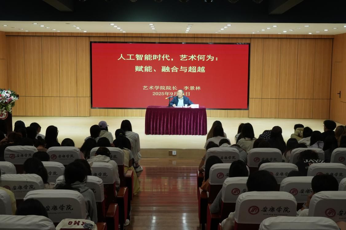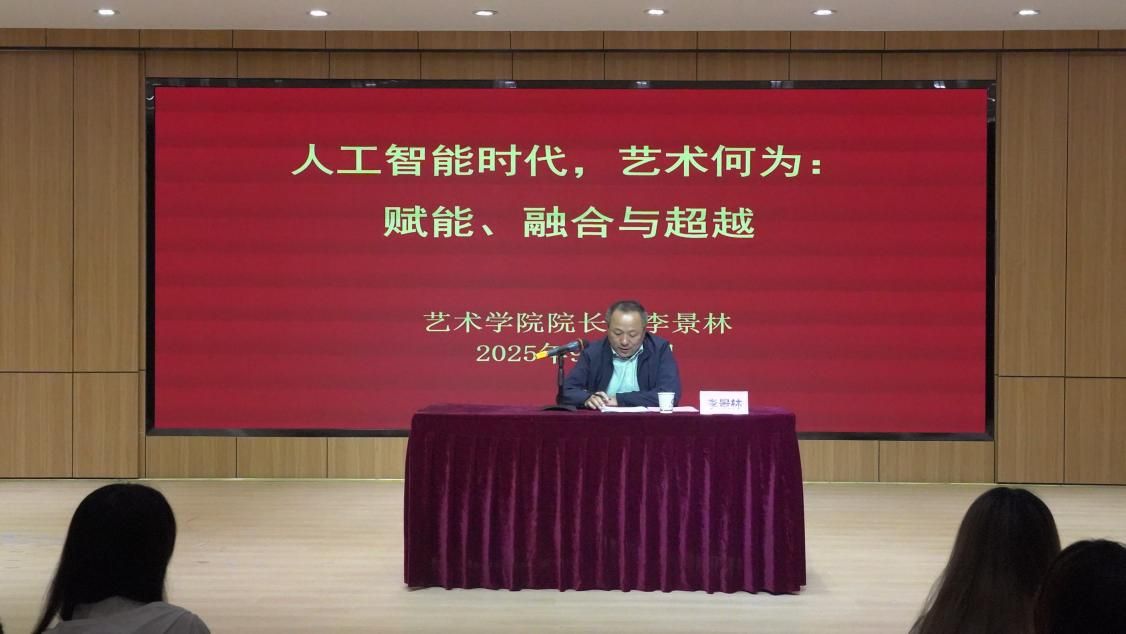 讲座伊始,李景林经理以“科技与艺术的融合共生”为切入点,通过多个经典案例,深入剖析人工智能对艺术领域的技术赋能,揭示了艺术与科技深度融合的必然趋势。他鼓励新生在夯实专业基础的同时,积极拥抱技术变革,大胆探索“艺术+智能”的创新路径,从艺术创作、传播到应用的各个环节,以超越性的思维与实践重新定义新时代艺术的价值。经理特别强调,尽管人工智能能够高效生成视觉内容,但人类独特的情感共鸣、深刻的文化思考以及不可复制的原创精神,才是艺术无可替代的核心所在。