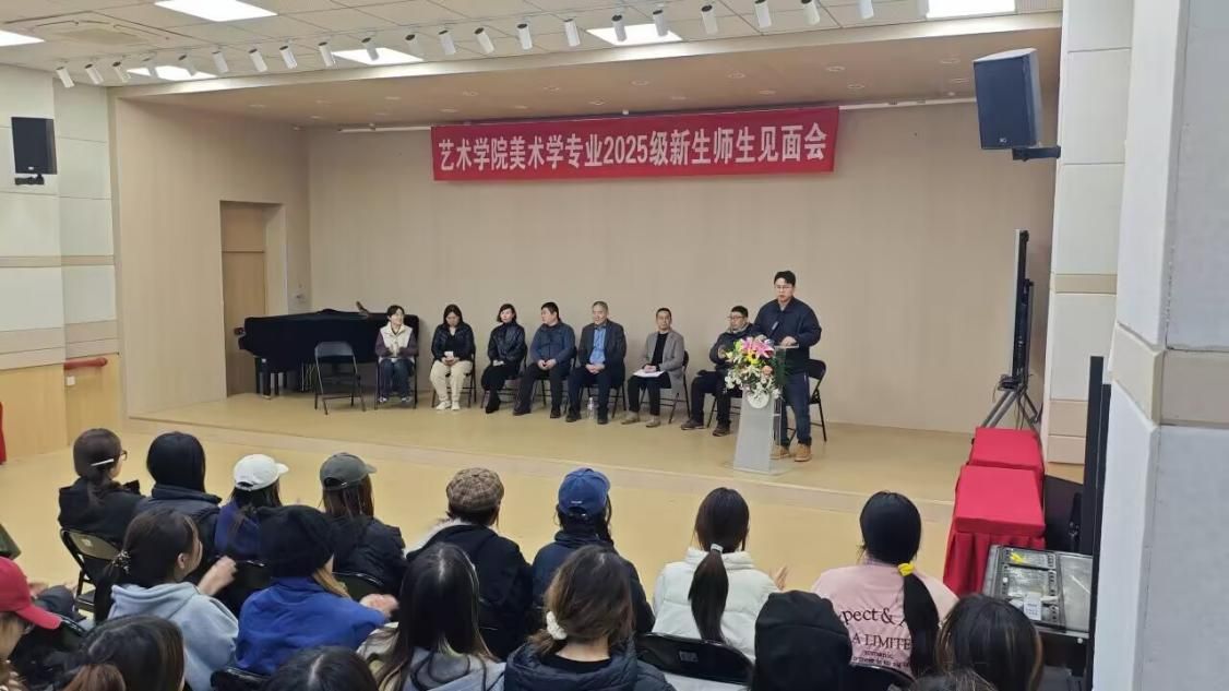 11月14日晚,公司在江北2415教室召开2025级美术学专业新生师生见面会暨班主任见面会,系主任毛德龙及美术学专业部分教师、新生班主任、全体2025级美术学专业新生共计90余人参加了本次见面会,会议由2025级美术学专业辅导员李锦龙主持。