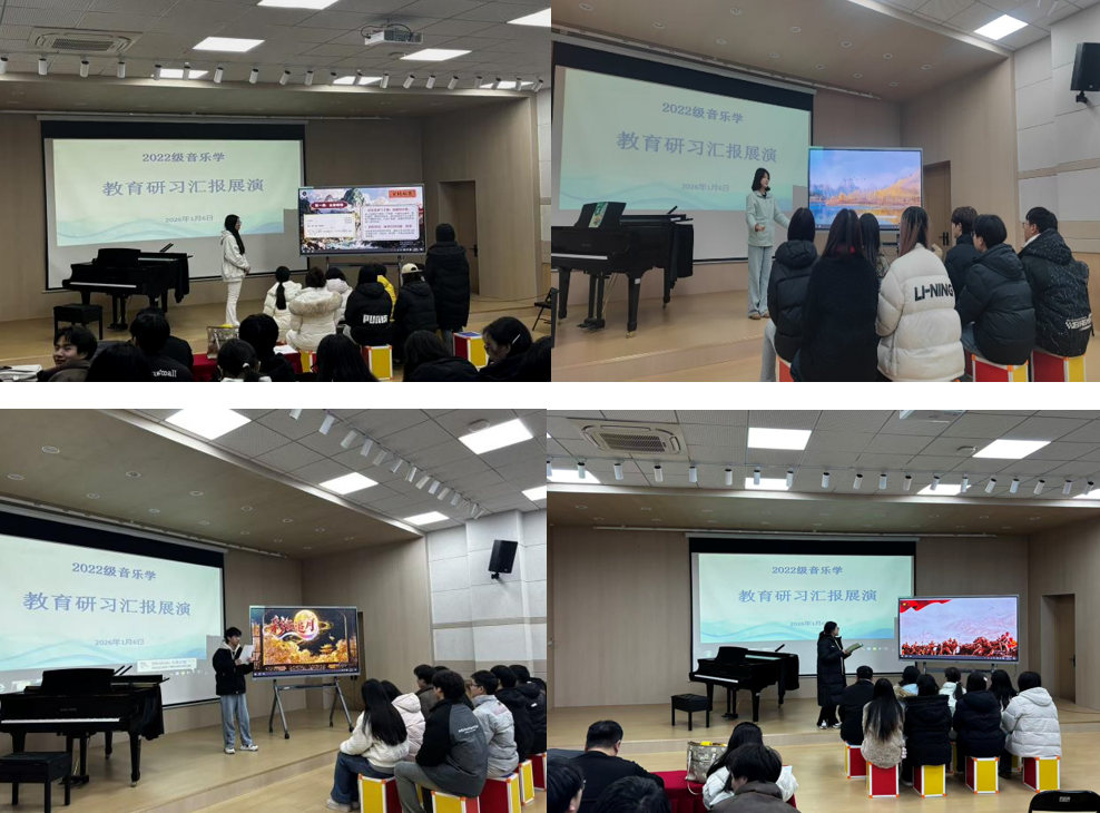 汇报会最终在满载收获与希冀的氛围中圆满落幕。指导老师们对同学们展现出的显著进步、饱满热情与深刻反思能力给予高度评价。此次汇报会不仅是对前期学习与实践成果的全面检阅,更是同学们迈向未来音乐教育生涯的崭新起点。同学们纷纷表示,将怀揣这份宝贵的实习经历与教育热忱,在今后的教育道路上潜心耕耘,以美妙音符启迪童真心灵,用真挚热爱浇灌教育沃土,为音乐教育事业注入源源不断的新生力量。