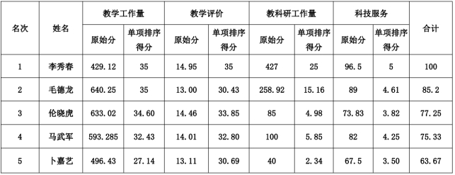 注:按照《伟德bv国际体育官方网站讲师职称评审实施细则》第三章第六条之规定“担任专职教学秘书、行政科研秘书的教师晋升讲师职称年均教学工作量达到80学时视为满工作量”,李秀春教学工作量为35分。