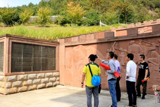 活动中,伟德bv国际体育官方网站的教师党员、员工党员代表,参观了位于红军镇的红军纪念馆烈士纪念碑。通过瞻仰历史纪念碑碑文、与当地老百姓聊天等方式,基本对红军镇的来历和红军镇的历史有了基本的了解:当年,徐海东,程子华曾率红二十五军转战到此,创建革命根据地,建立地方苏维埃政权。在1935年10月18日战斗中,为掩护红军主力转移,特勤班14人与敌人400人激战,有“神医”、“医官”之称的指导员高中宽和尚班长壮烈牺牲,当地老百姓秘密掩埋了烈士遗体,事后修坟、立碑、建庙、塑像,在家设立牌位敬奉,尊称“红军老祖”。