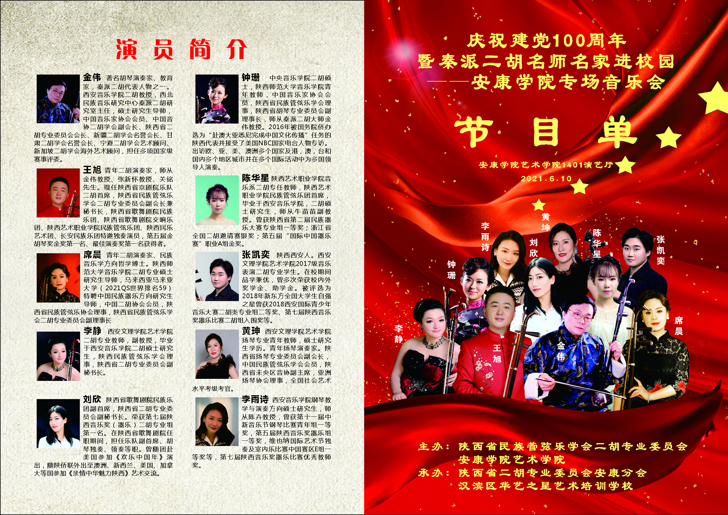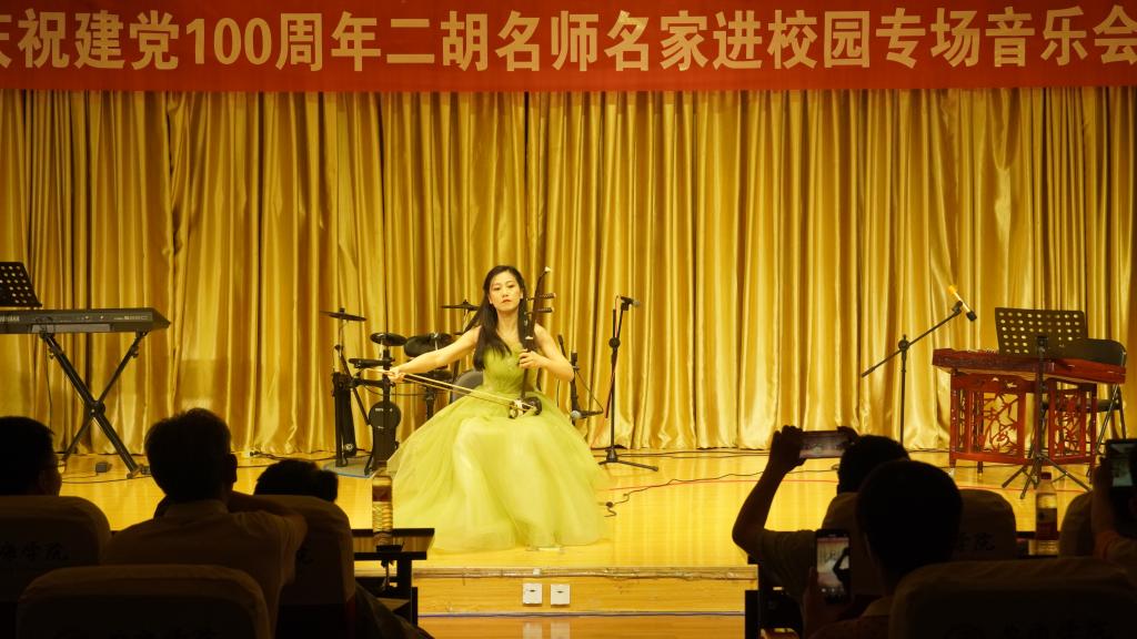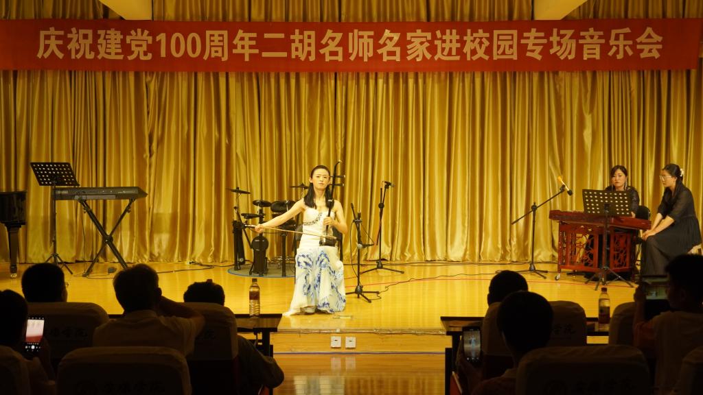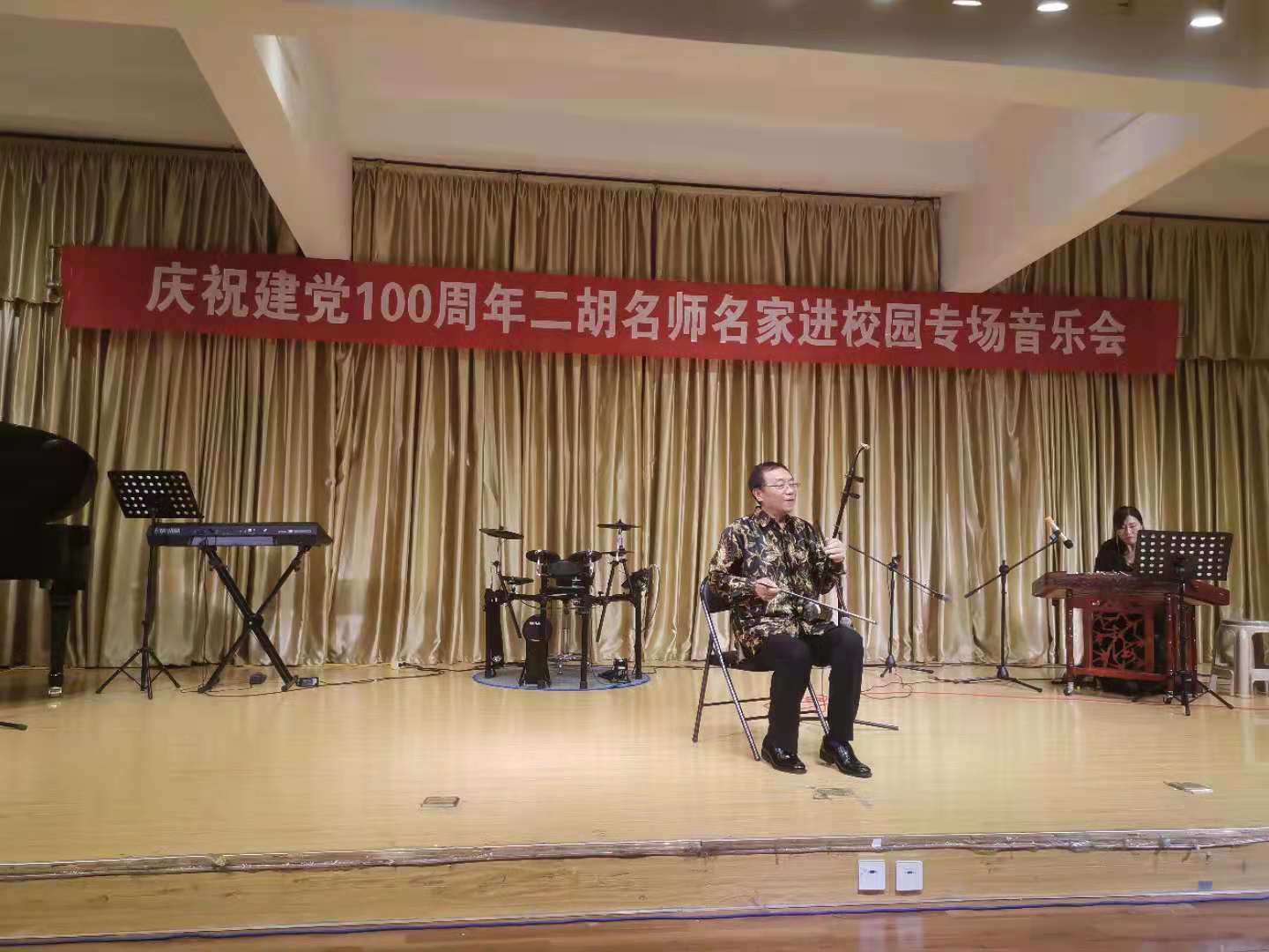 610日晚,由陕西民族管弦乐学会二胡专业委员会和公司公司联合主办的“庆祝中国共产党成立100周年暨秦派二胡名师名家进校园伟德bv国际体育官方网站专场音乐会”在公司江北校区1401演艺厅成功举办,公司师生200余人聆听了音乐会。