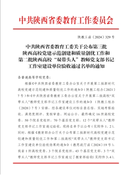 近日,陕西省委教育工委公布了第三批陕西高公司党建示范创建和质量创优工作验收结果。伟德bv国际体育官方网站教工第三党支部顺利通过第三批全省高公司党建工作“样板支部”培育创建验收。
